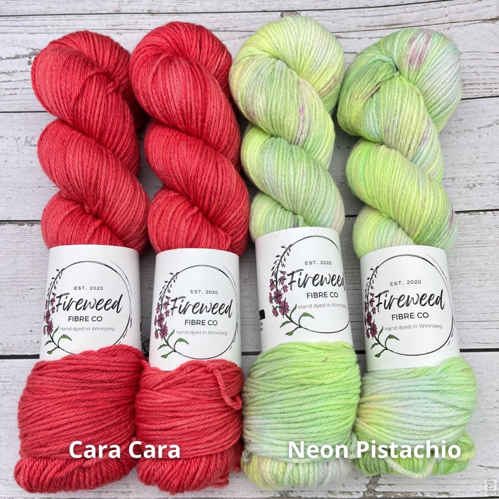 Non-superwash, DK-weight 100% merino yarn, hand dyed in Winnipeg.